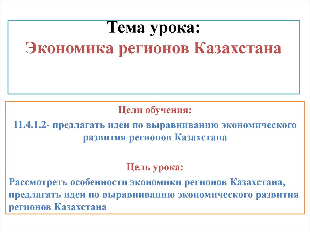 1. Тема урока: Экономика регионов Казахстана