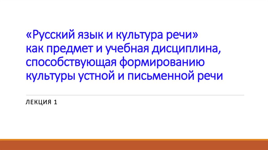 1. «Русский язык и культура речи» как предмет и учебная дисциплина, способствующая формированию культуры устной и письменной речи