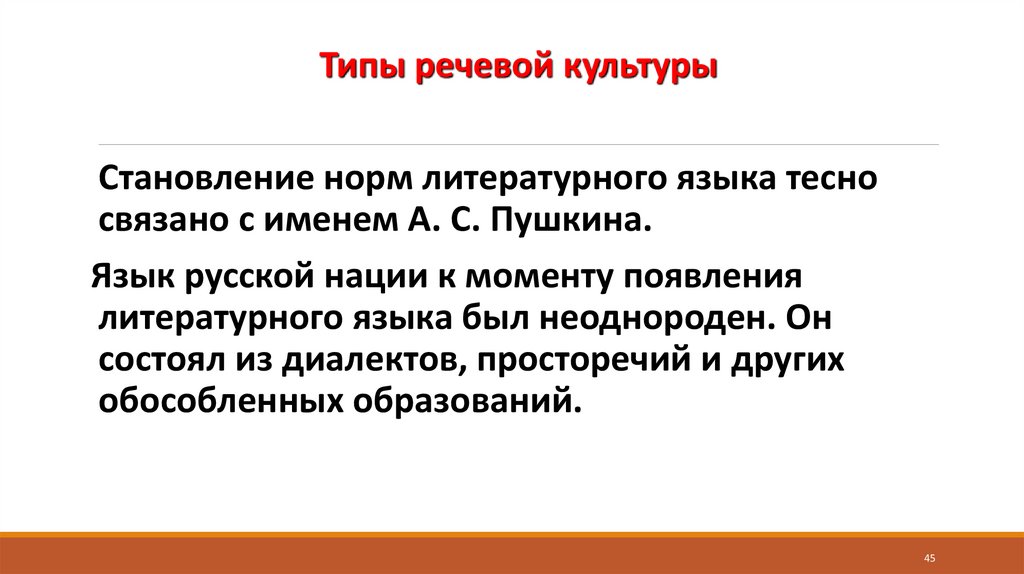 Предмет изучения в рамках дисциплины – нормысовременного русского литературного языка, виды их