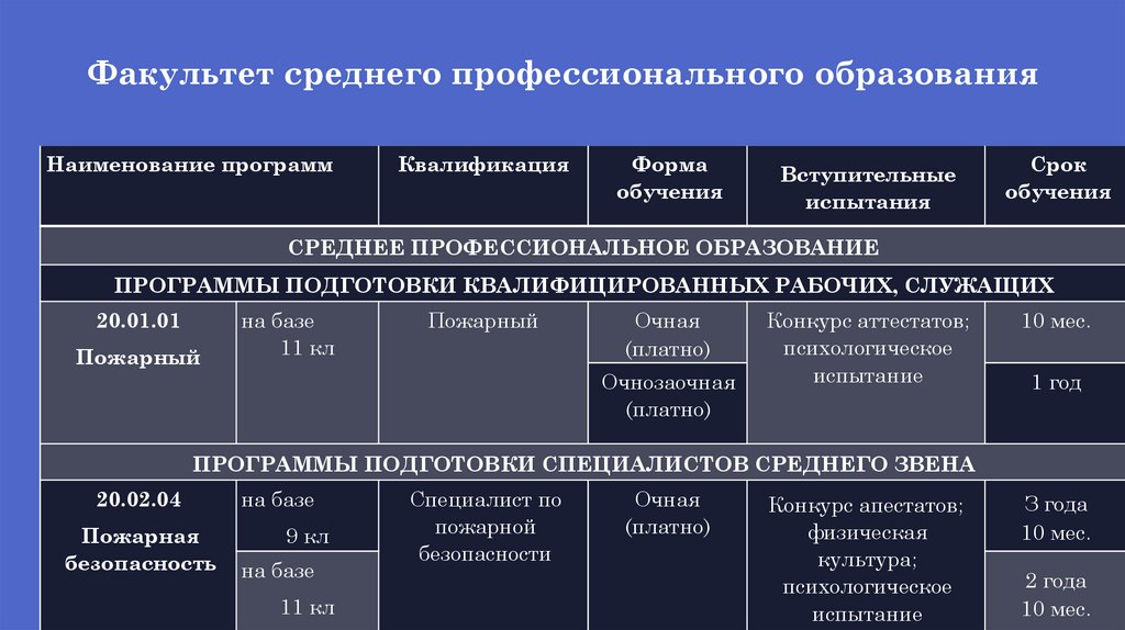 ПРОГРАММЫ ПОДГОТОВКИ СПЕЦИАЛИСТОВ СРЕДНЕГО ЗВЕНА