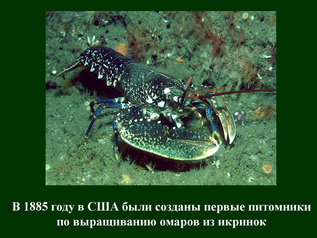 В 1885 году в США были созданы первые питомникипо выращиванию омаров из икринок