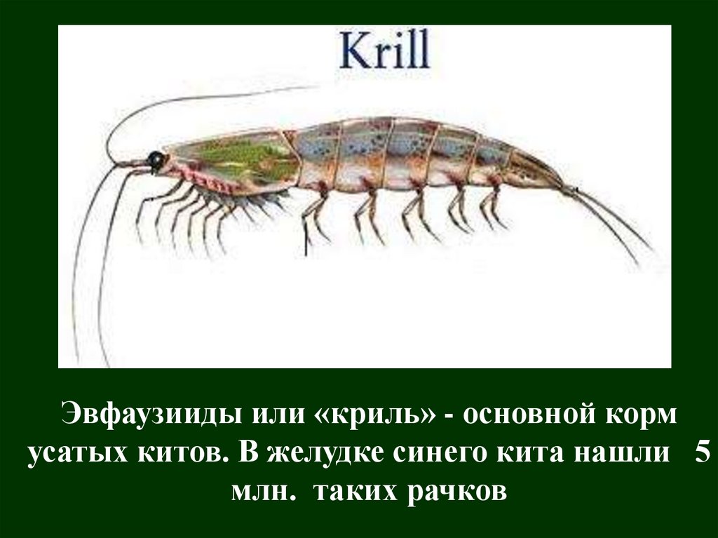 Эвфаузииды или «криль» - основной кормусатых китов. В желудке синего кита нашли 5