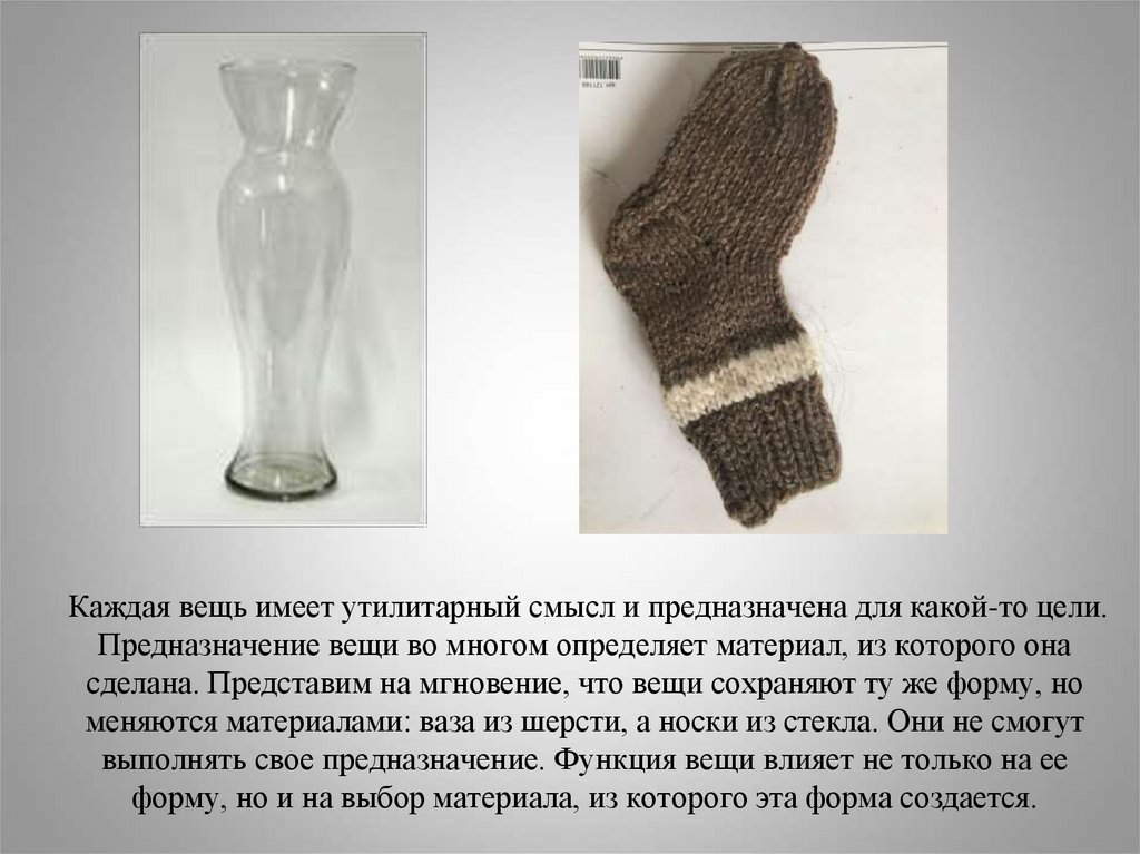 меняются материалами: ваза из шерсти, а носки из стекла. Они не смогут