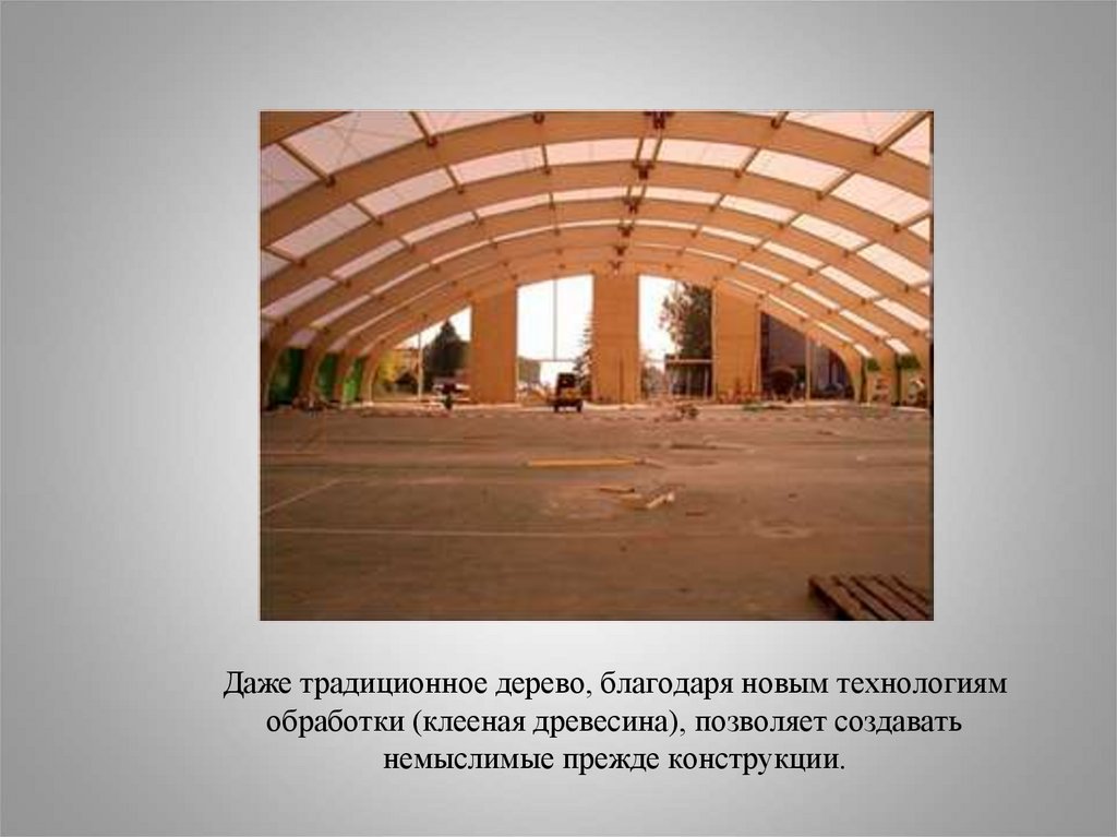 Даже традиционное дерево, благодаря новым технологиямобработки (клееная древесина), позволяет создавать