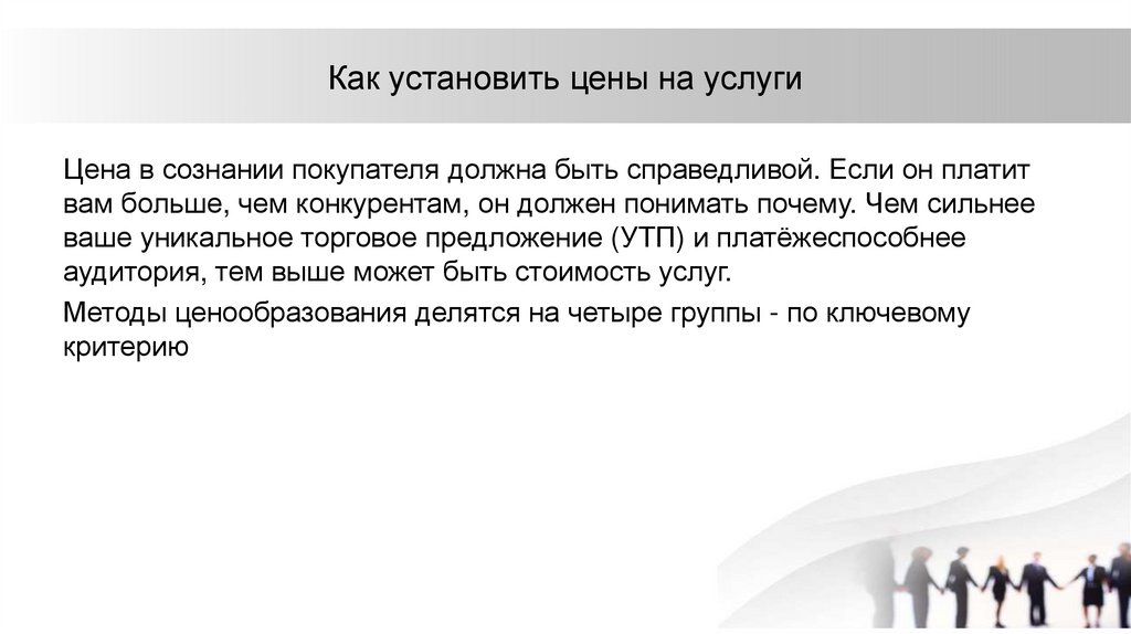 ваше уникальное торговое предложение (УТП) и платёжеспособнее