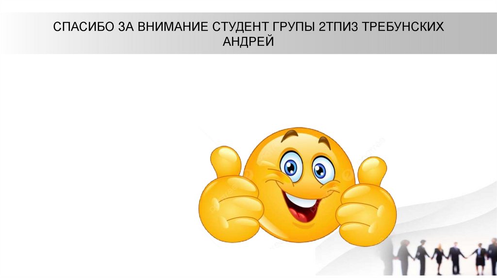 СПАСИБО ЗА ВНИМАНИЕ СТУДЕНТ ГРУПЫ 2ТПИ3 ТРЕБУНСКИХАНДРЕЙ