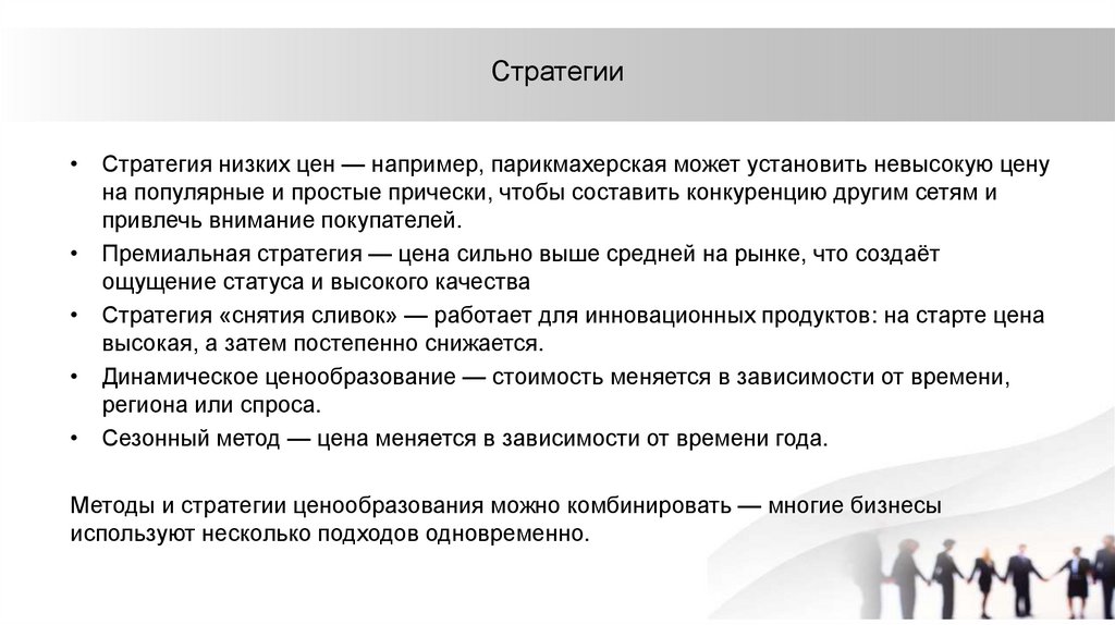 Методы и стратегии ценообразования можно комбинировать — многие бизнесы