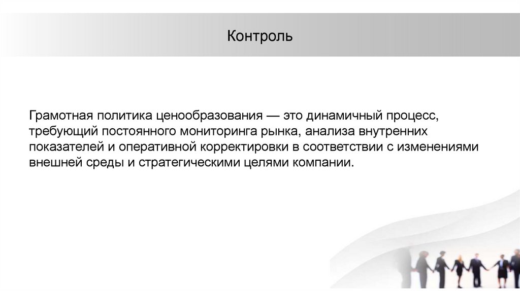 КонтрольГрамотная политика ценообразования — это динамичный процесс,