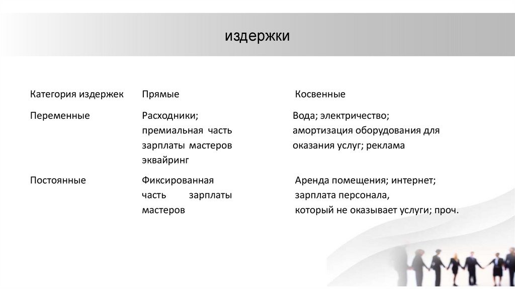 Переменные — издержки, которые возникают только при оказании услуг.