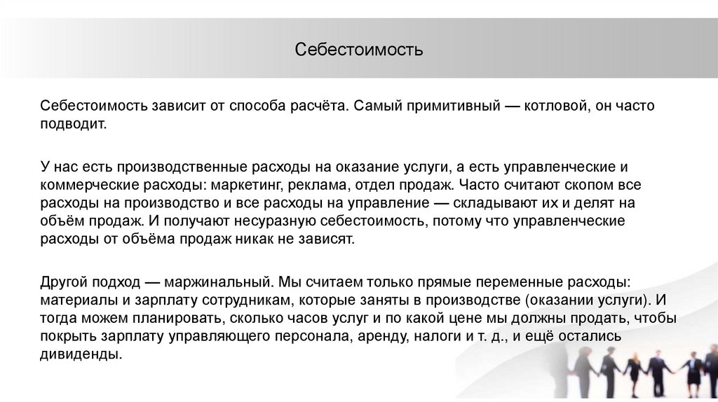 Чем больше услуг оказываете, тем выше переменные расходы.