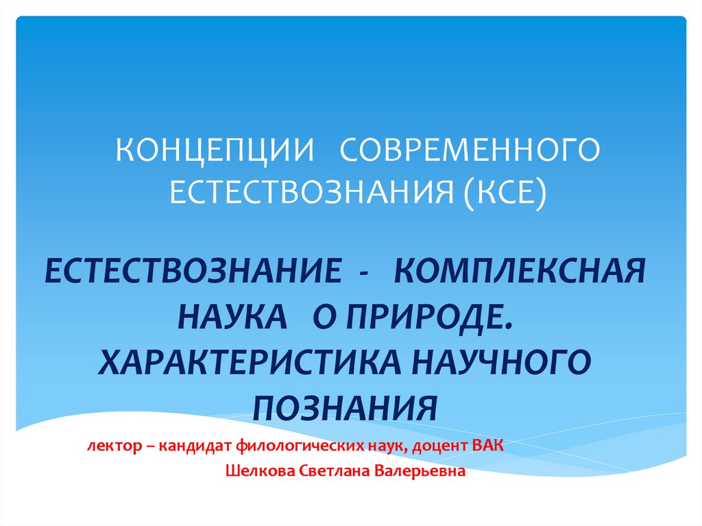 КСЕ = Концепции + Современный + ЕстествознаниеПопытка целостного рассмотрения достижений
