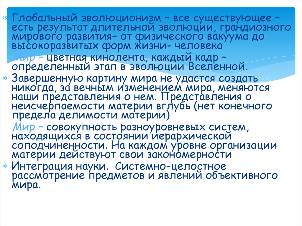 Интегральное естествознание характеризуетсяне столько продолжающимися процессами