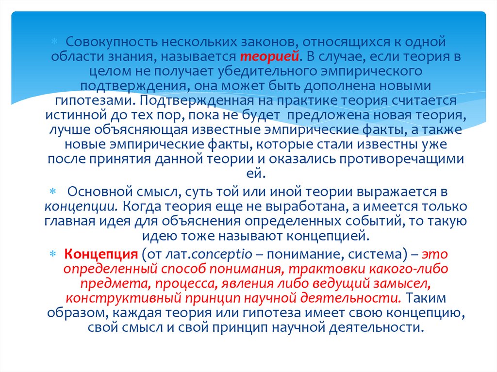 Концепция – более философская составляющаянаучной теории