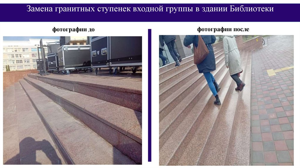 Замена гранитных ступенек входной группы в здании Библиотекифотографии до