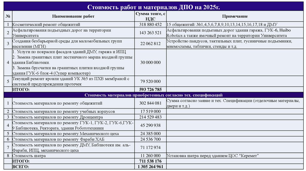 Фото отчет о проделанной работе по объектамНАО «КазНУ им. аль-Фараби»