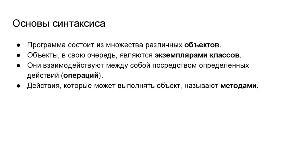Основы синтаксиса● Программа состоит из множества различных объектов.
