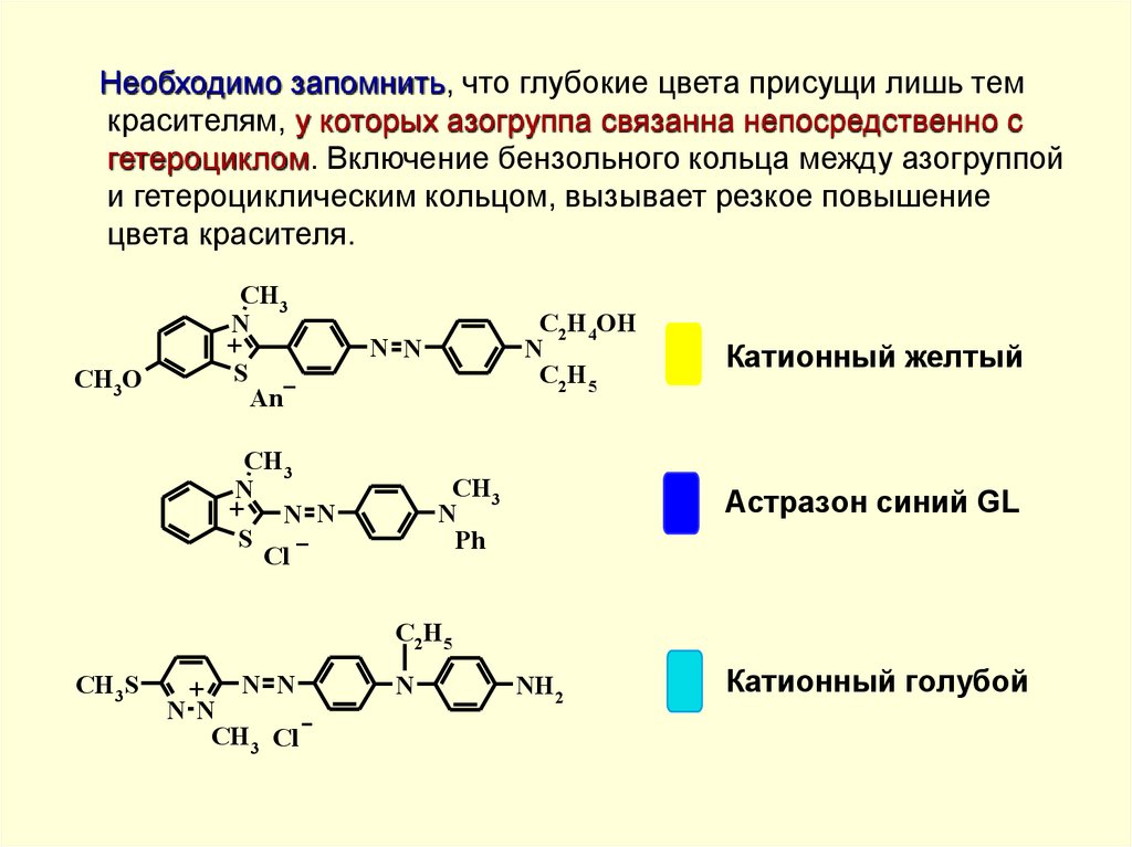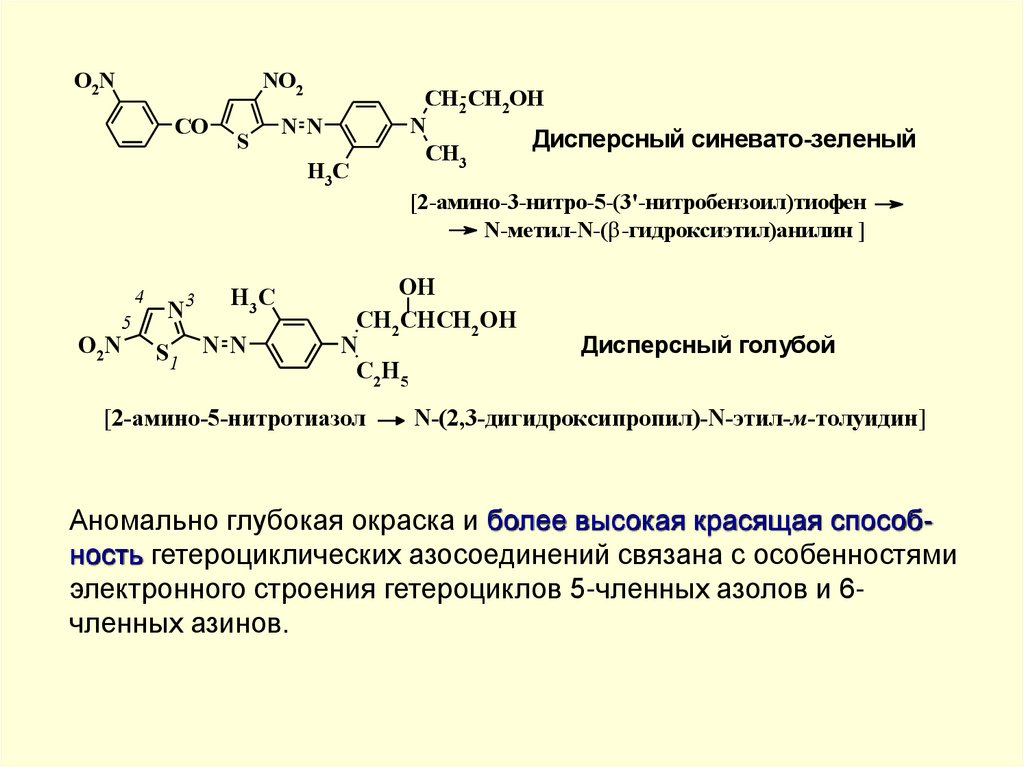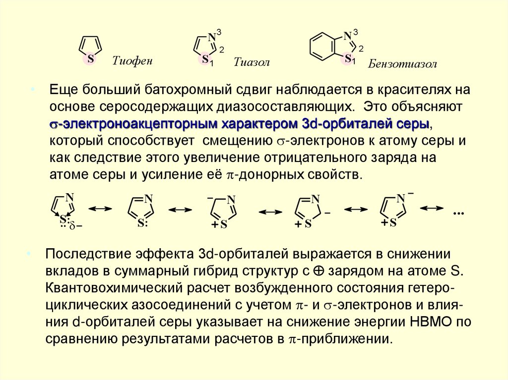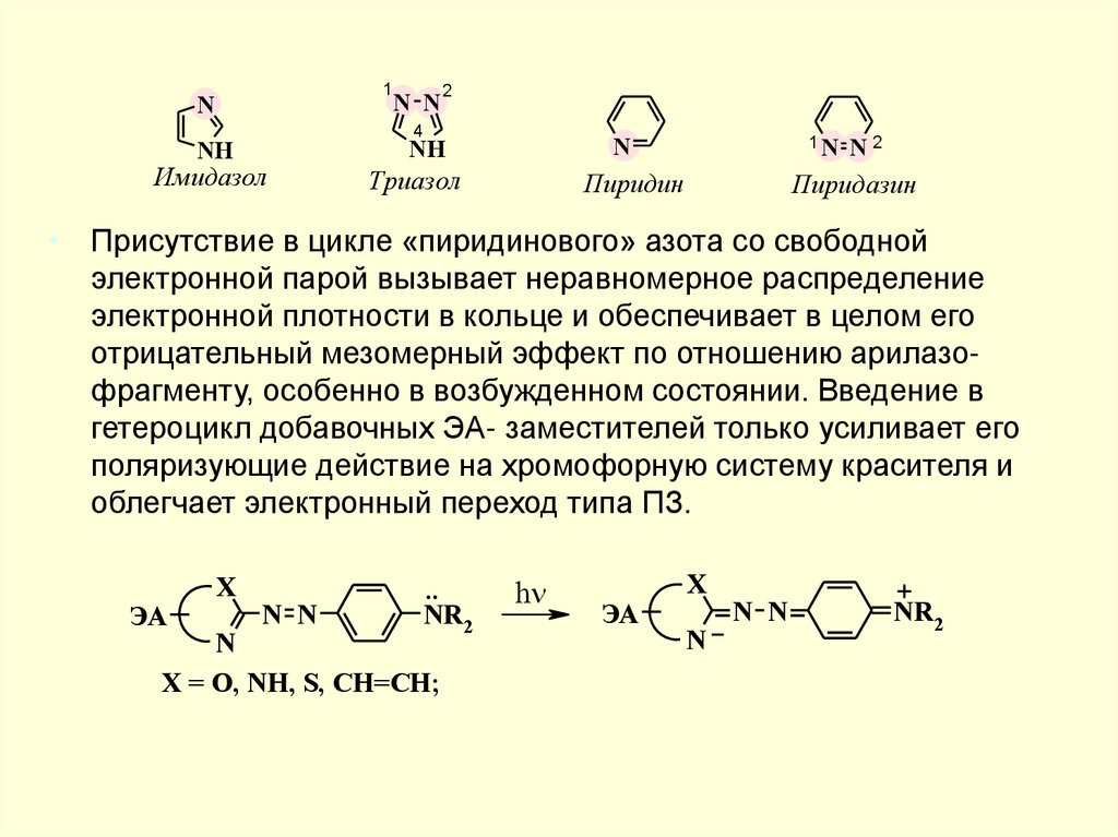 влияние на цвет азокрасителей. Присутствие гетероатомов