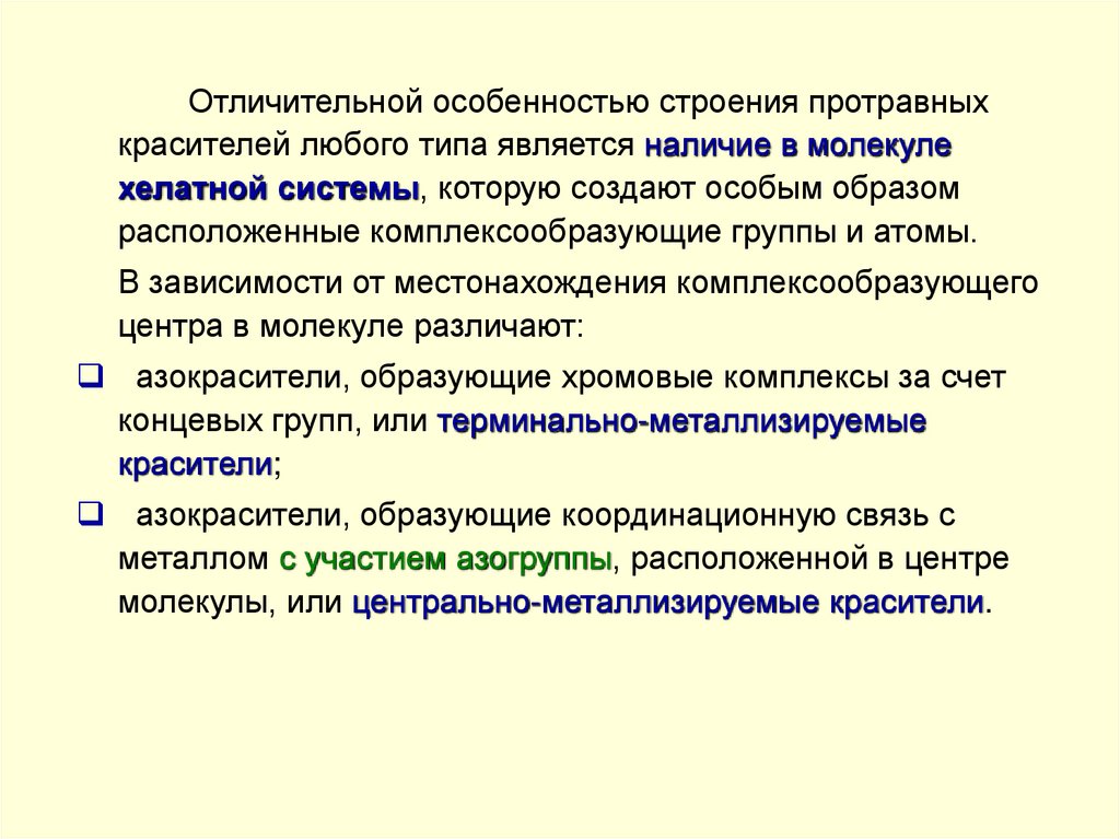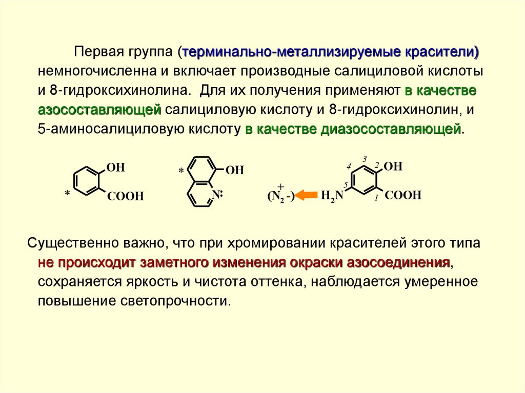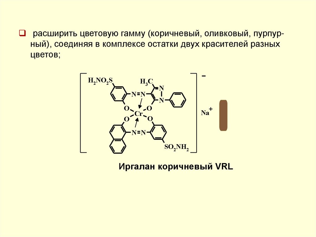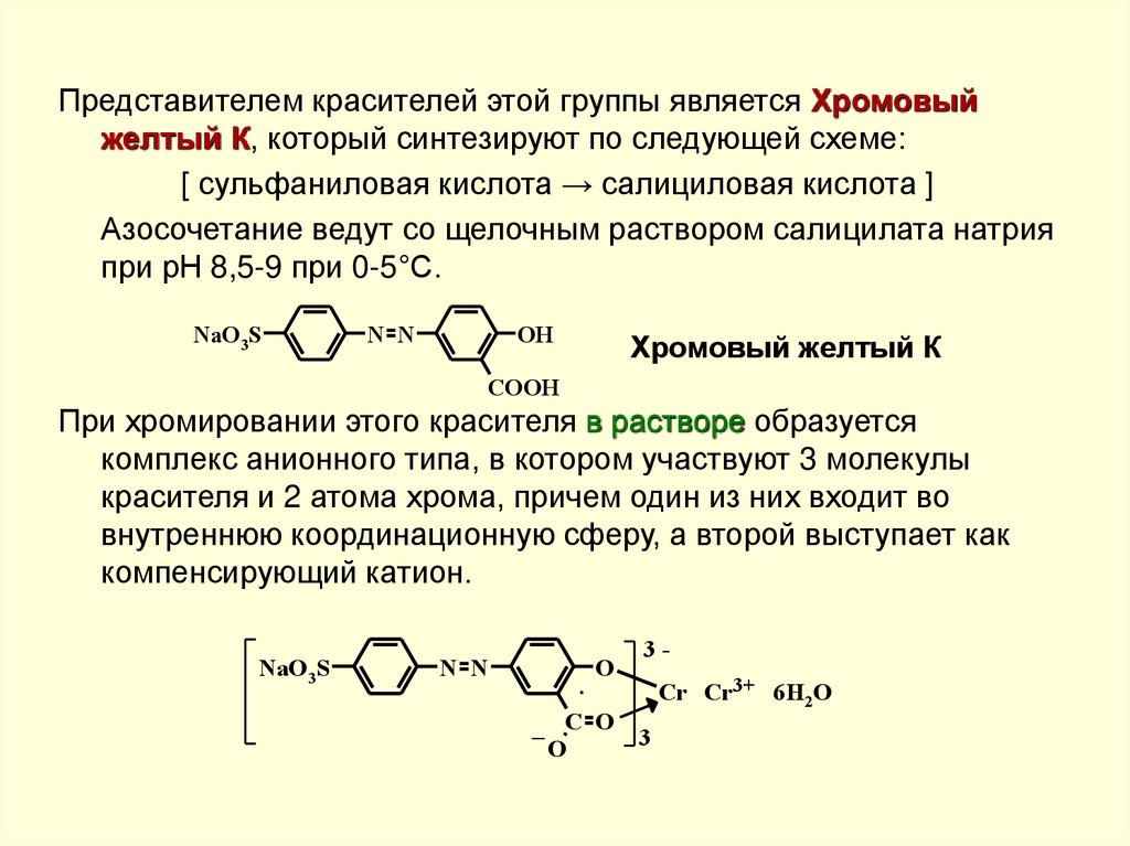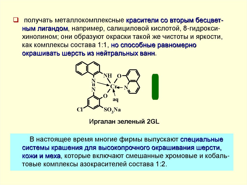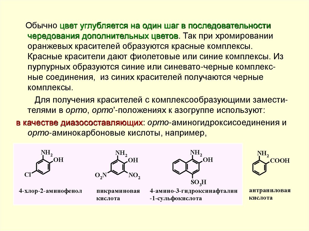 Для получения желтых окрасок используют арилиды -кетокислот,зеленых окрасок арилид 2-гидроксиантрацен-3-карбоновой