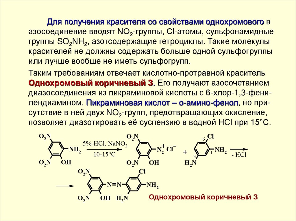Красители, хромофорная система которых содержит однуазогруппу, являются простейшими представителями этого