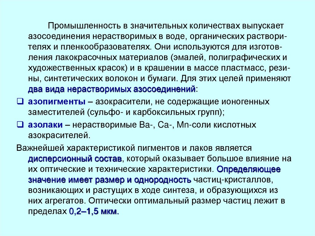 Существуют специальные выпускные формы, в которыхазопигмент наносится на различные минеральные субстраты:
