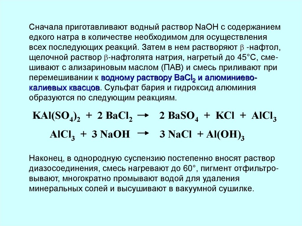 перемешивании к водному раствору BaCl2 и алюминиевокалиевых квасцов. Сульфат бария и гидроксид алюминия