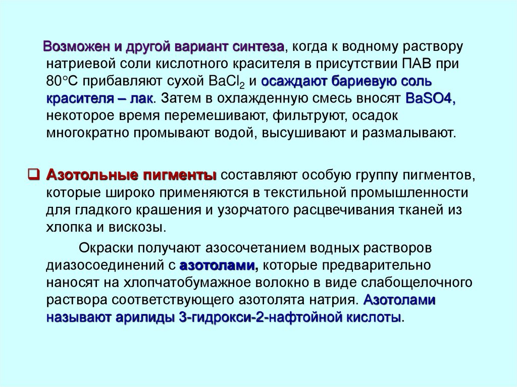 что упрощает процесс крашения. Образующиеся непосредственно на волокне азопигменты нерастворимы в воде, обладают