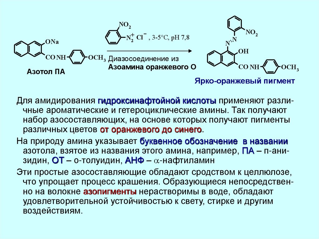 азотола, взятое из названия этого амина, например, ПА – п-анизидин, ОТ – о-толуидин, АНФ – -нафтиламин