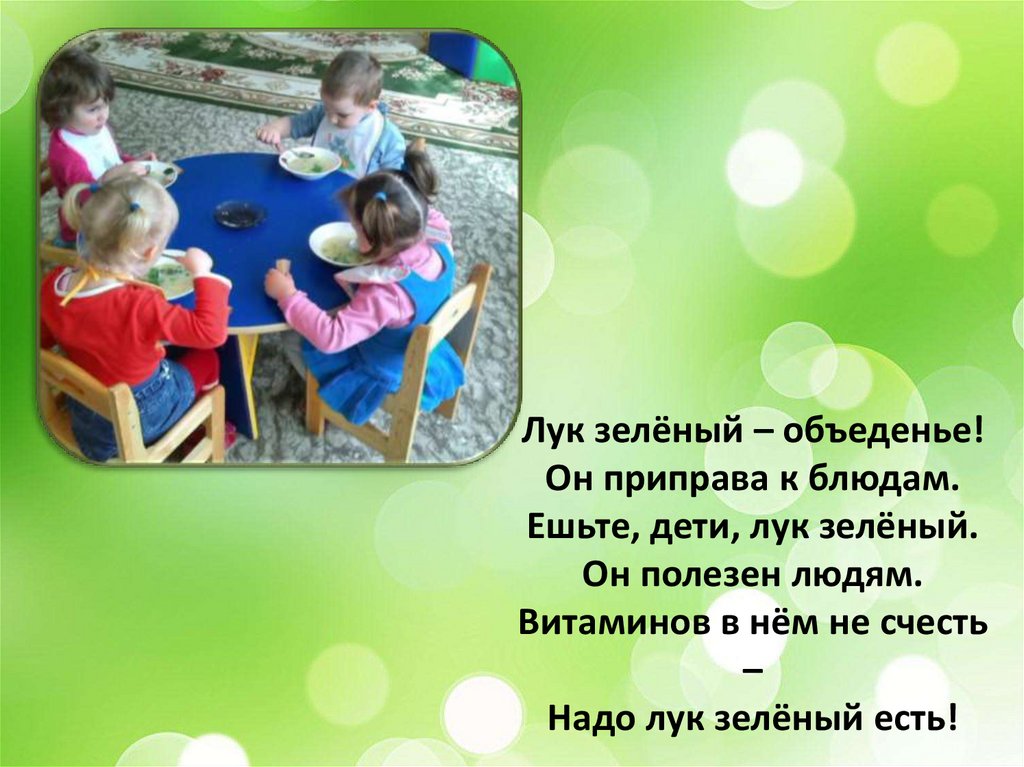 Ешьте, дети, лук зелёный.