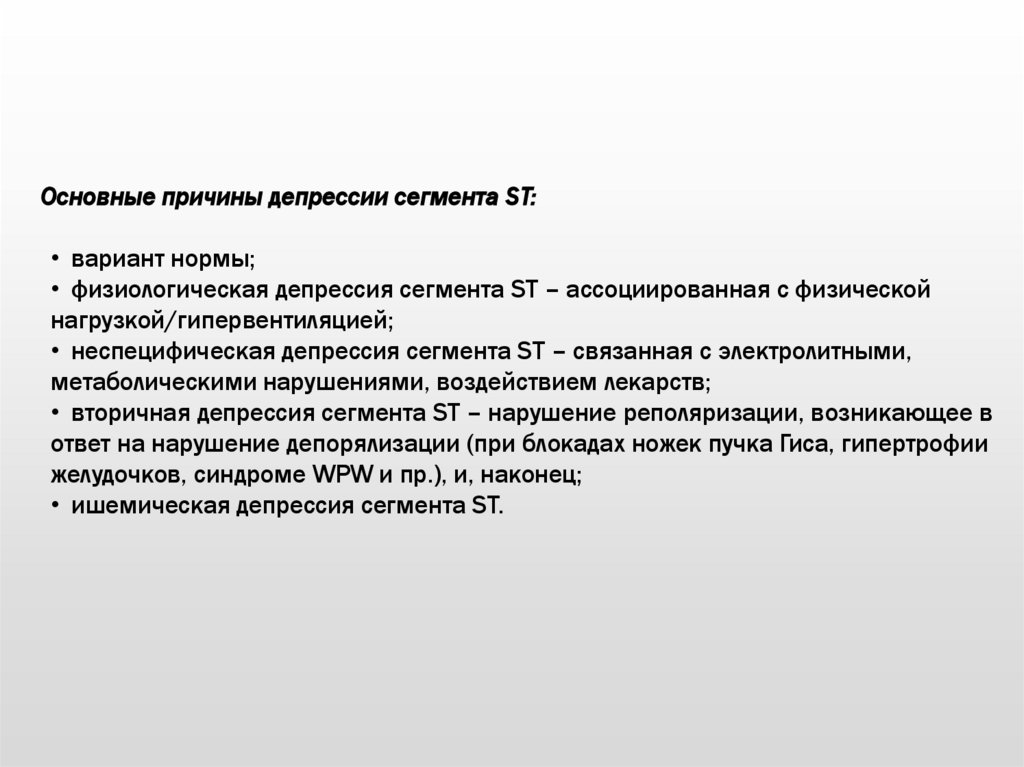 •Удлинение интервала PQ, расширение QRS, депрессия сегмента ST;