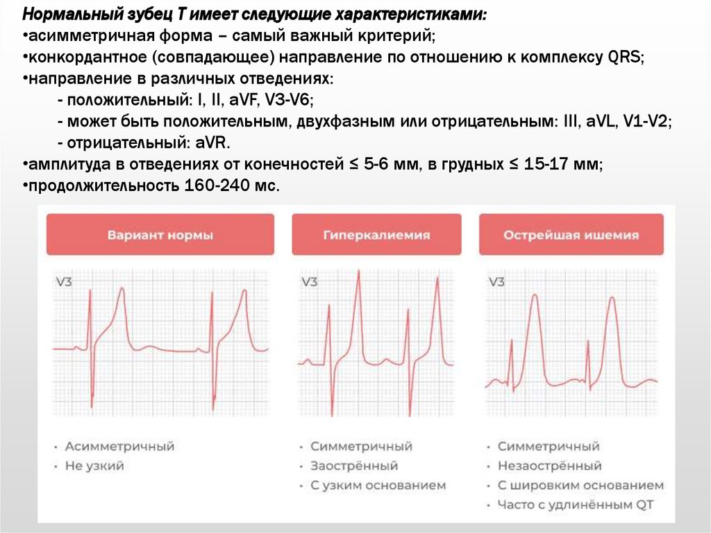 Увеличение сывороточного калия > 5,5 ммоль/л сопровождается нарушениями реполяризации: