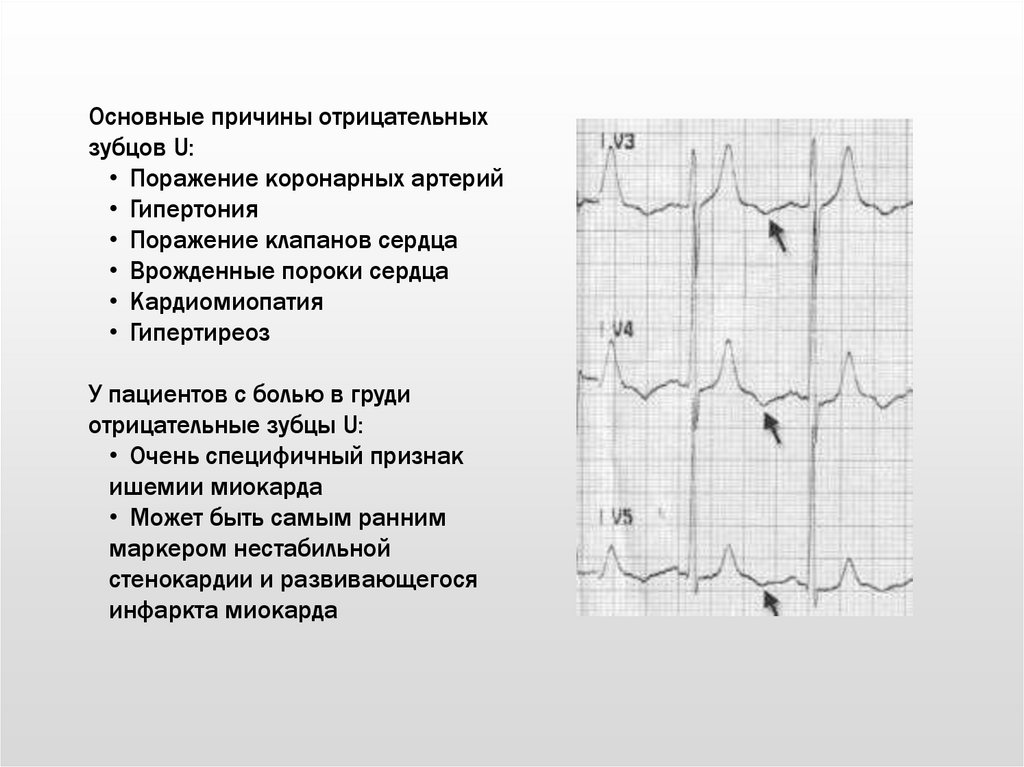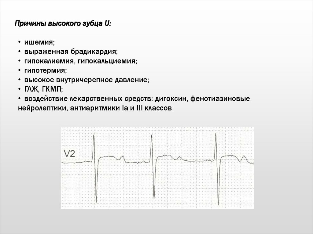 •Увеличение ширины и амплитуды зубца U, инверсия зубца Т;