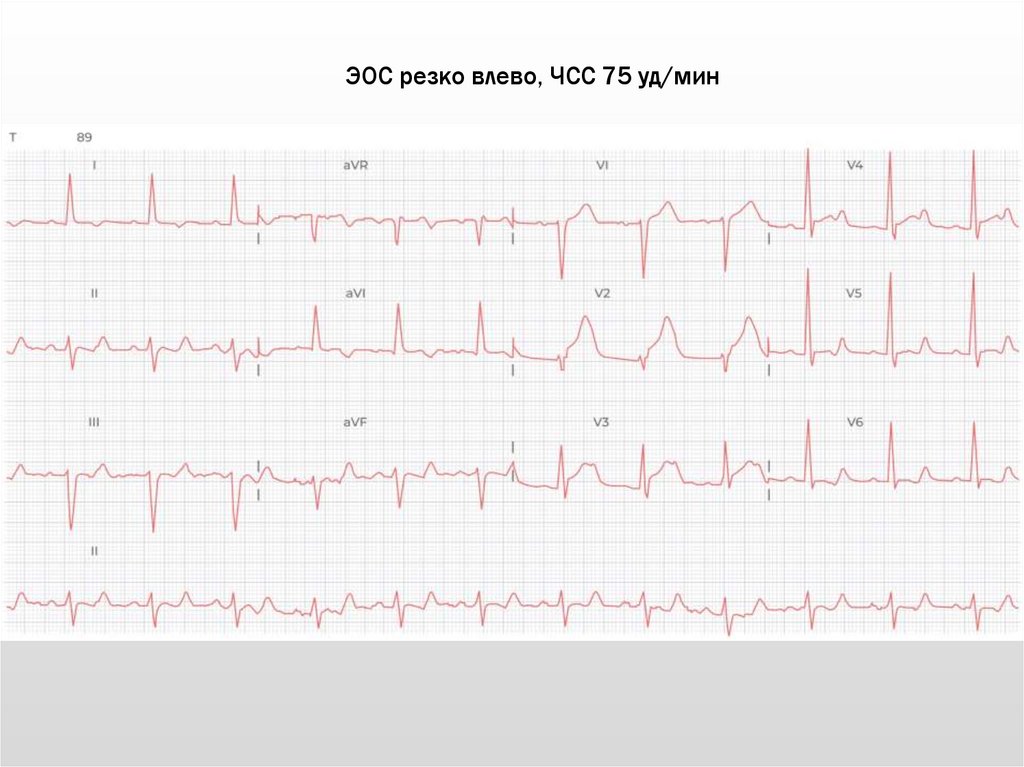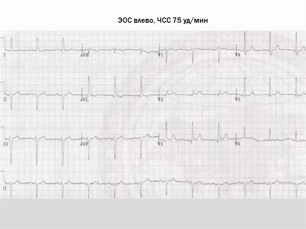 ЭОС резко влево, ЧСС 75 уд/мин34.