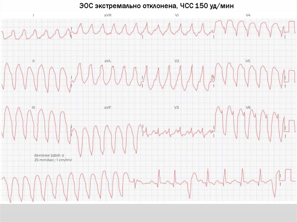 ЭОС экстремально отклонена, ЧСС 150 уд/мин35.