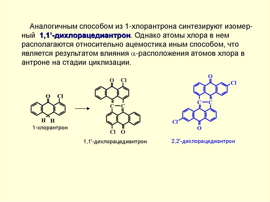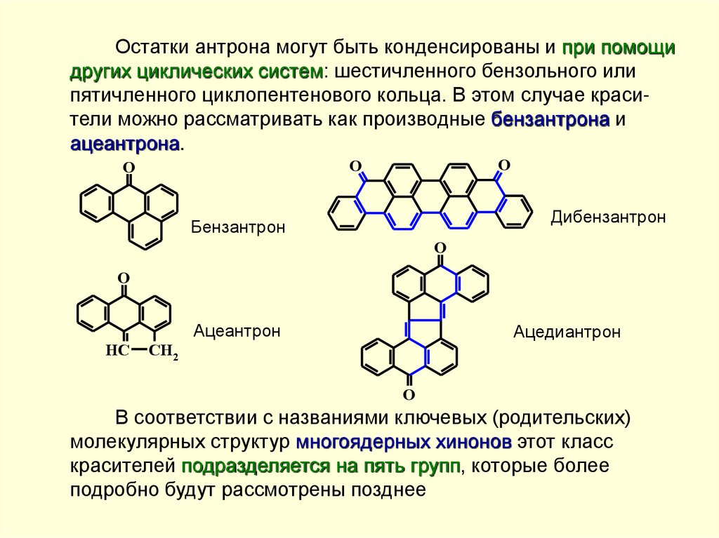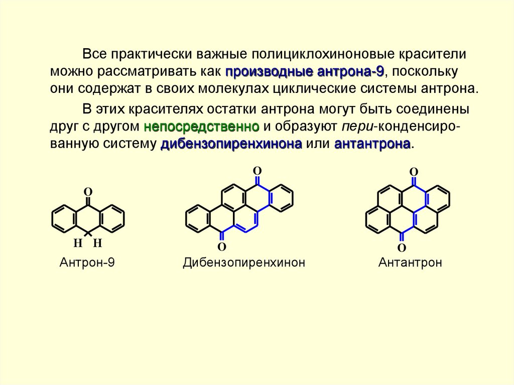 Все практически важные полициклохиноновые красителиможно рассматривать как производные антрона-9, поскольку