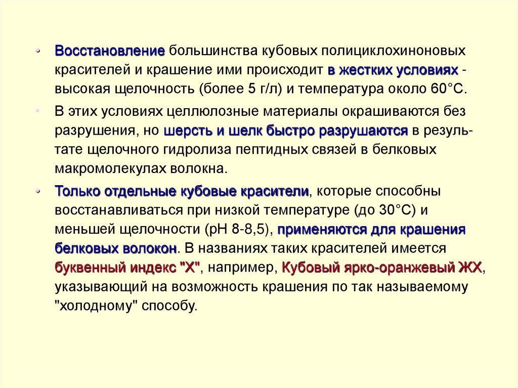 окраски, чем при крашении исходными кубовыми красителями.