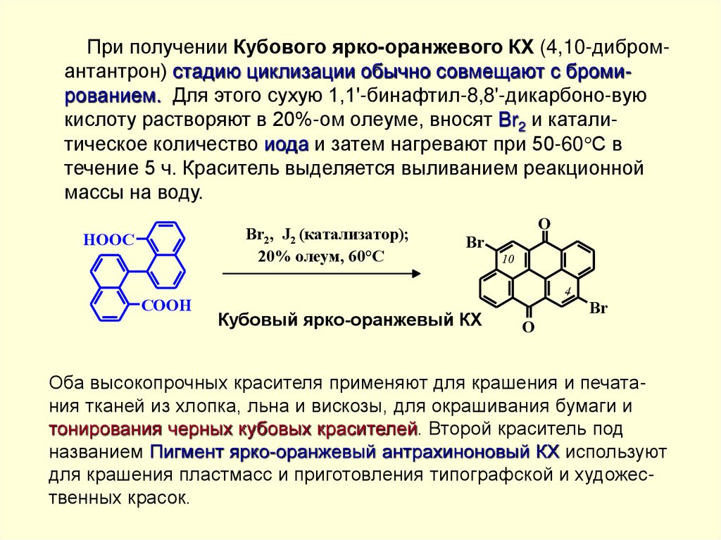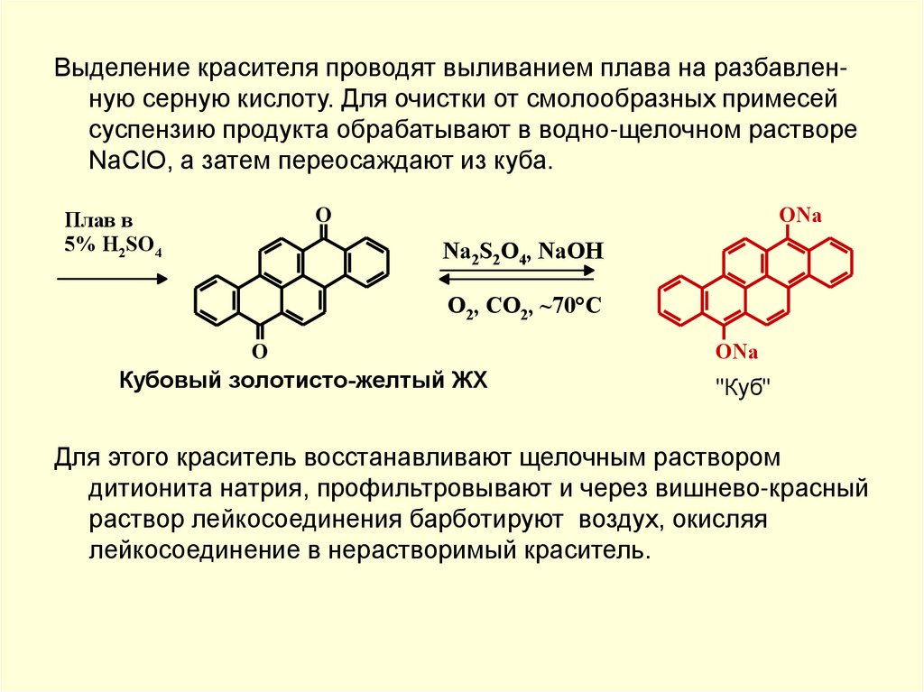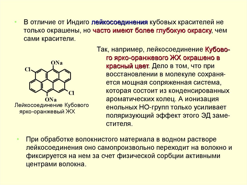 Так, например, лейкосоединение Кубового ярко-оранжевого ЖХ окрашено в