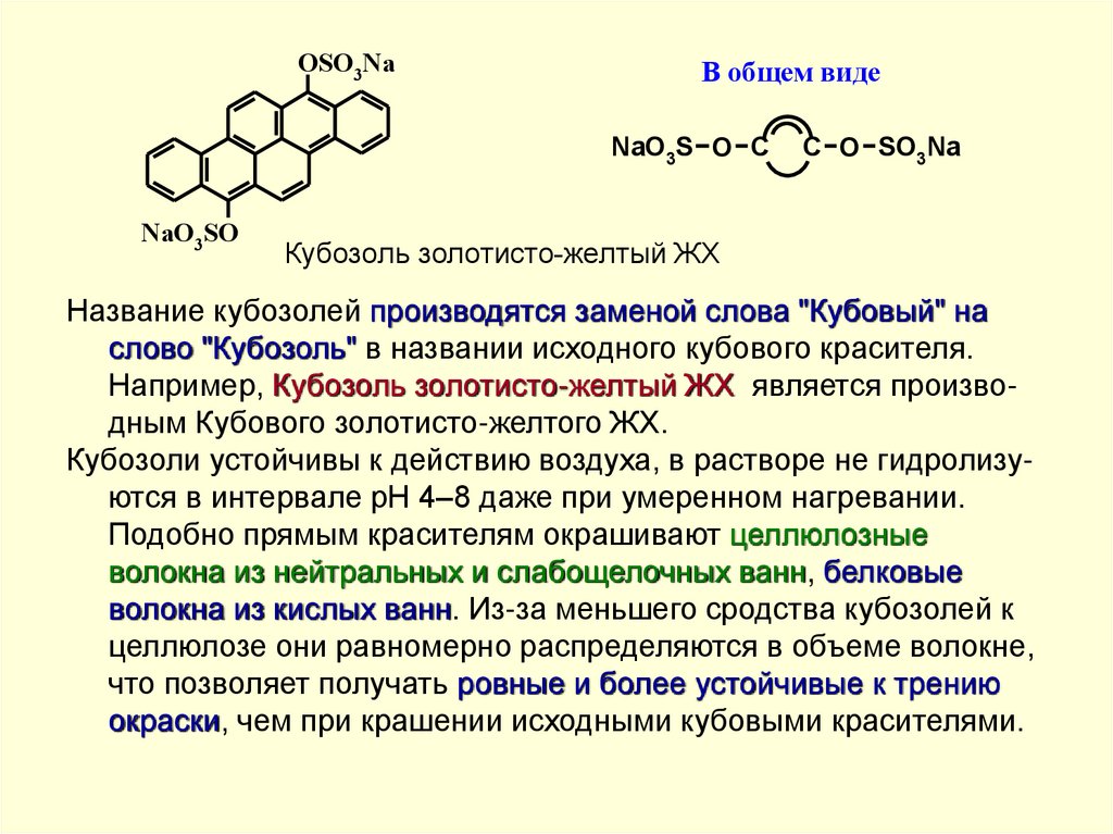 слово "Кубозоль" в названии исходного кубового красителя.