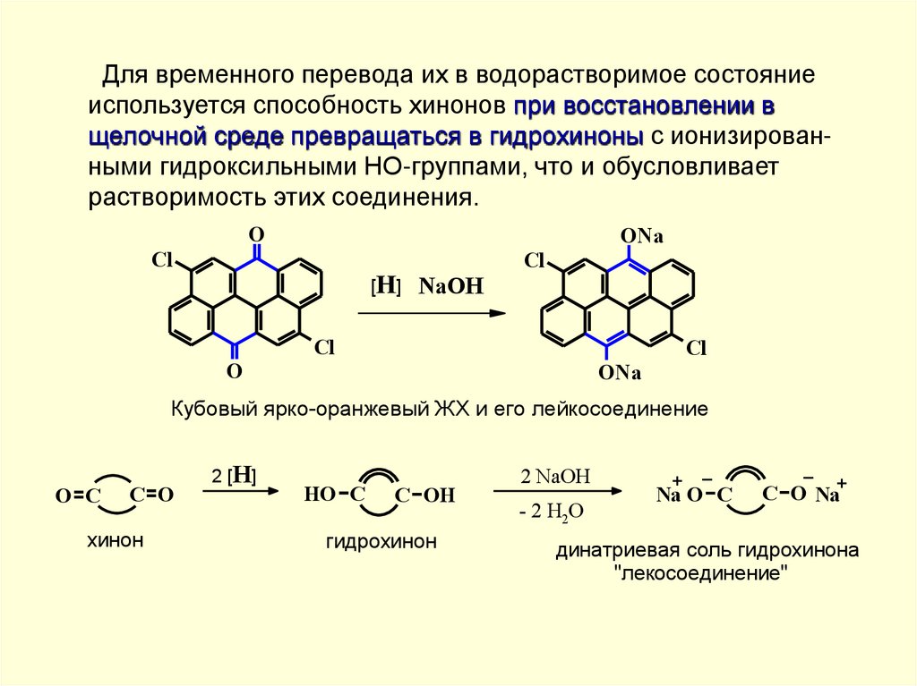 щелочной среде превращаться в гидрохиноны с ионизированными гидроксильными HО-группами, что и обусловливает