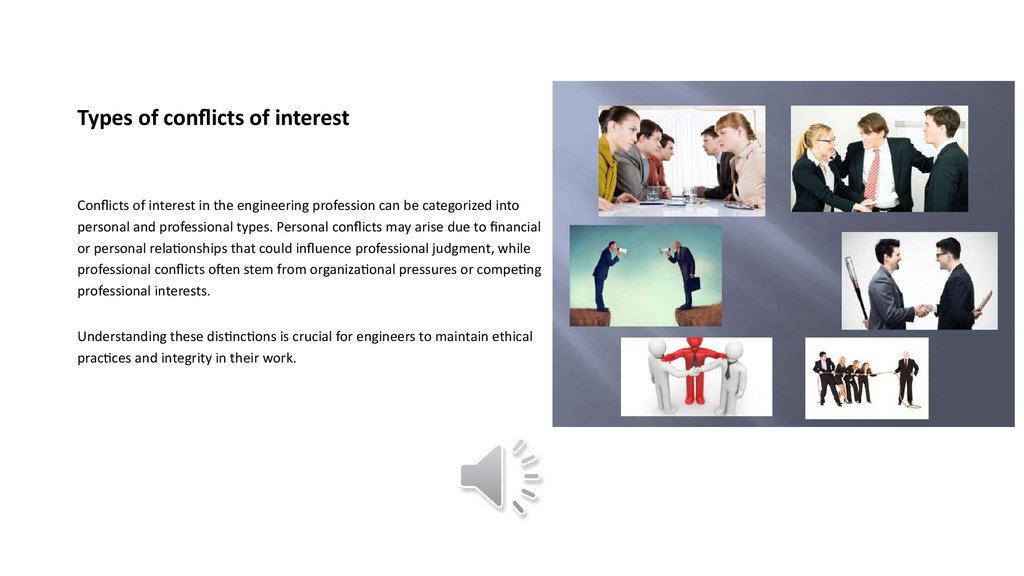 Types of conflicts of interestConflicts of interest in the engineering profession can be categorized into