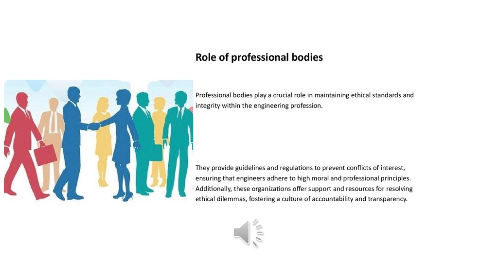 Role of professional bodiesProfessional bodies play a crucial role in maintaining ethical standards and
