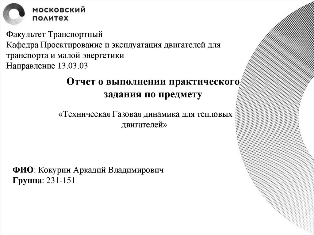 Факультет ТранспортныйКафедра Проектирование и эксплуатация двигателей для