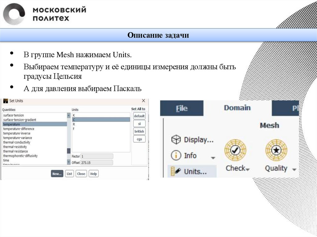Описание задачиВ группе Mesh нажимаем Units.