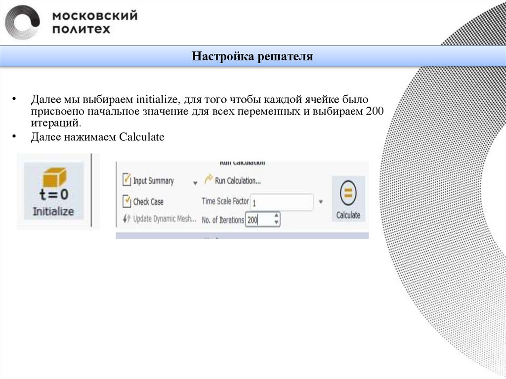 Настройка решателяДалее мы выбираем initialize, для того чтобы каждой ячейке было