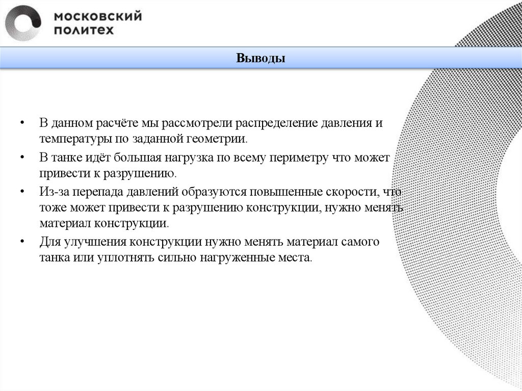 ВыводыВ данном расчёте мы рассмотрели распределение давления и