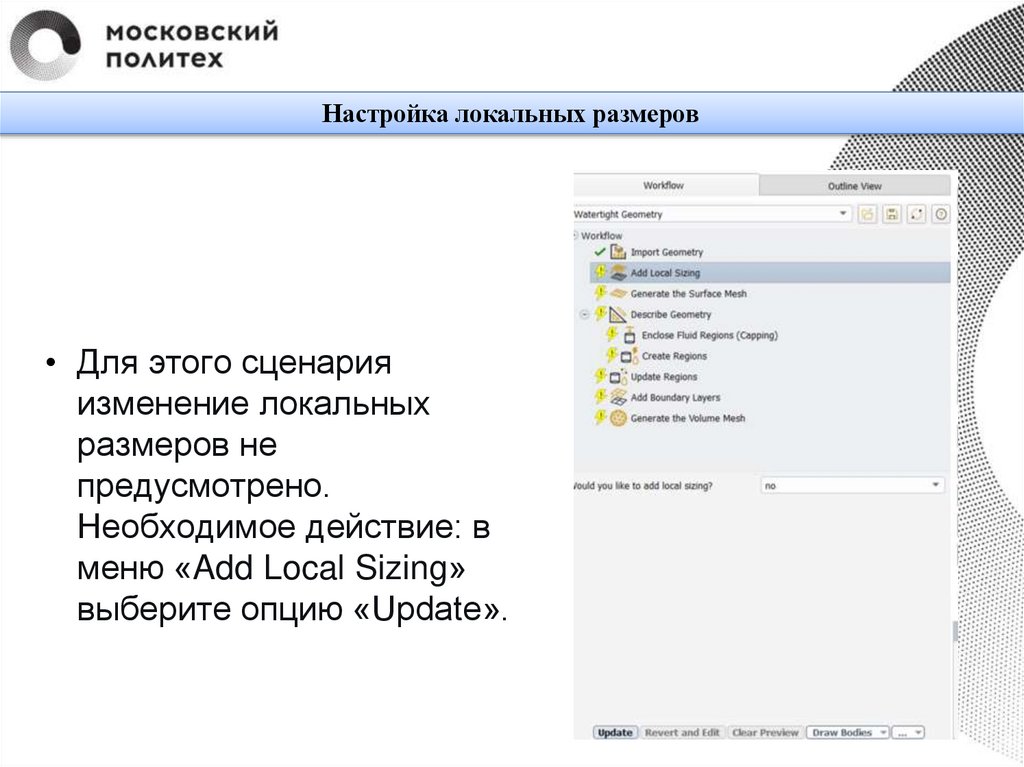 Настройка локальных размеров• Для этого сценария