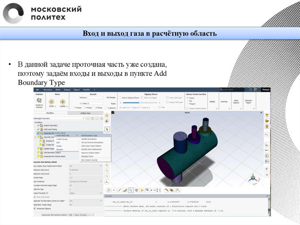 Вход и выход газа в расчётную область• В данной задаче проточная часть уже создана,