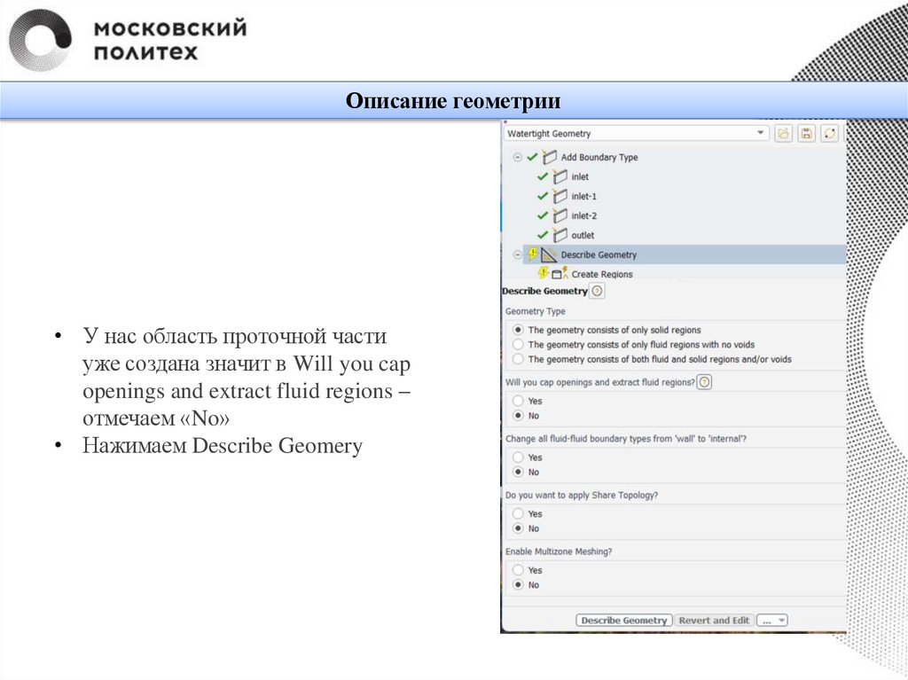 Описание геометрии• У нас область проточной части