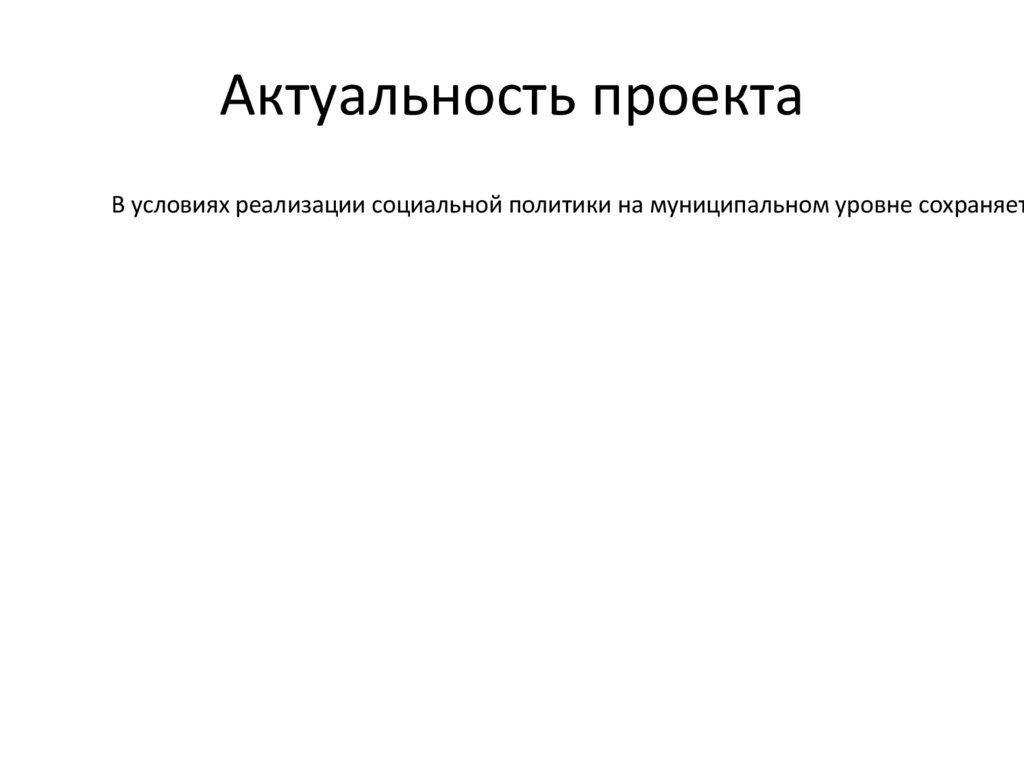 Актуальность проектаВ условиях реализации социальной политики на муниципальном уровне сохраняет