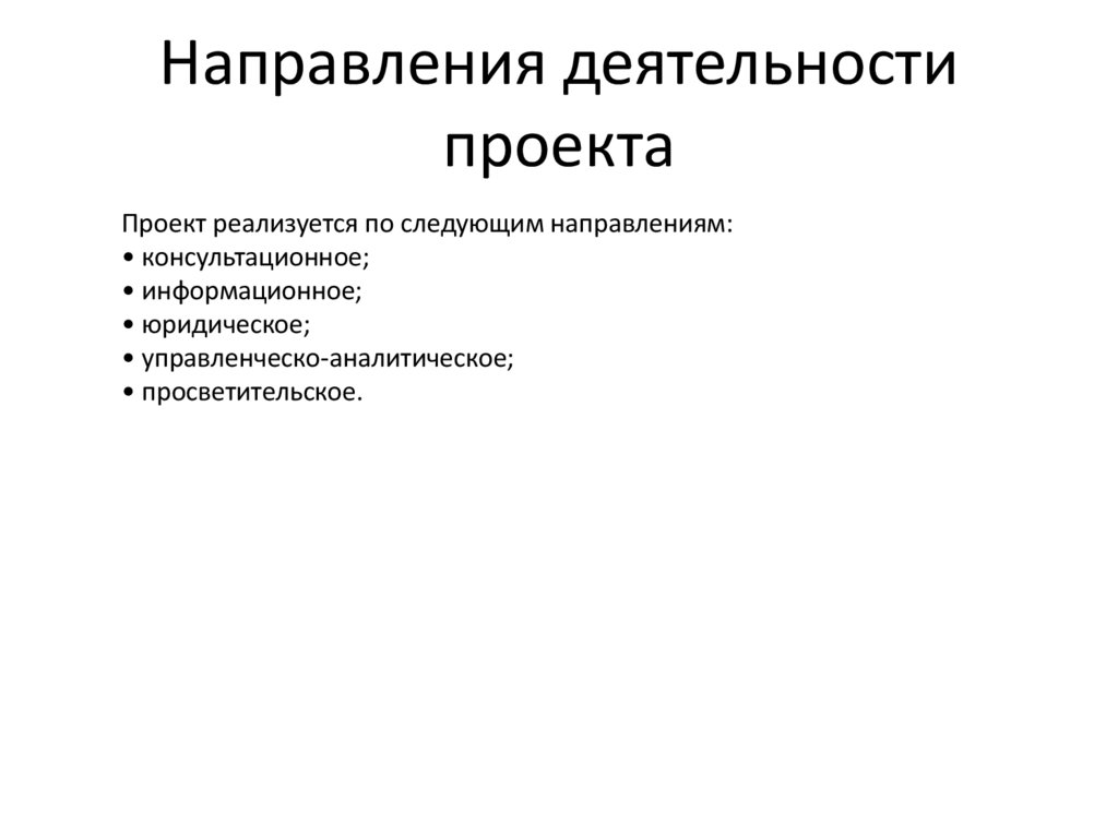 Направления деятельностипроекта