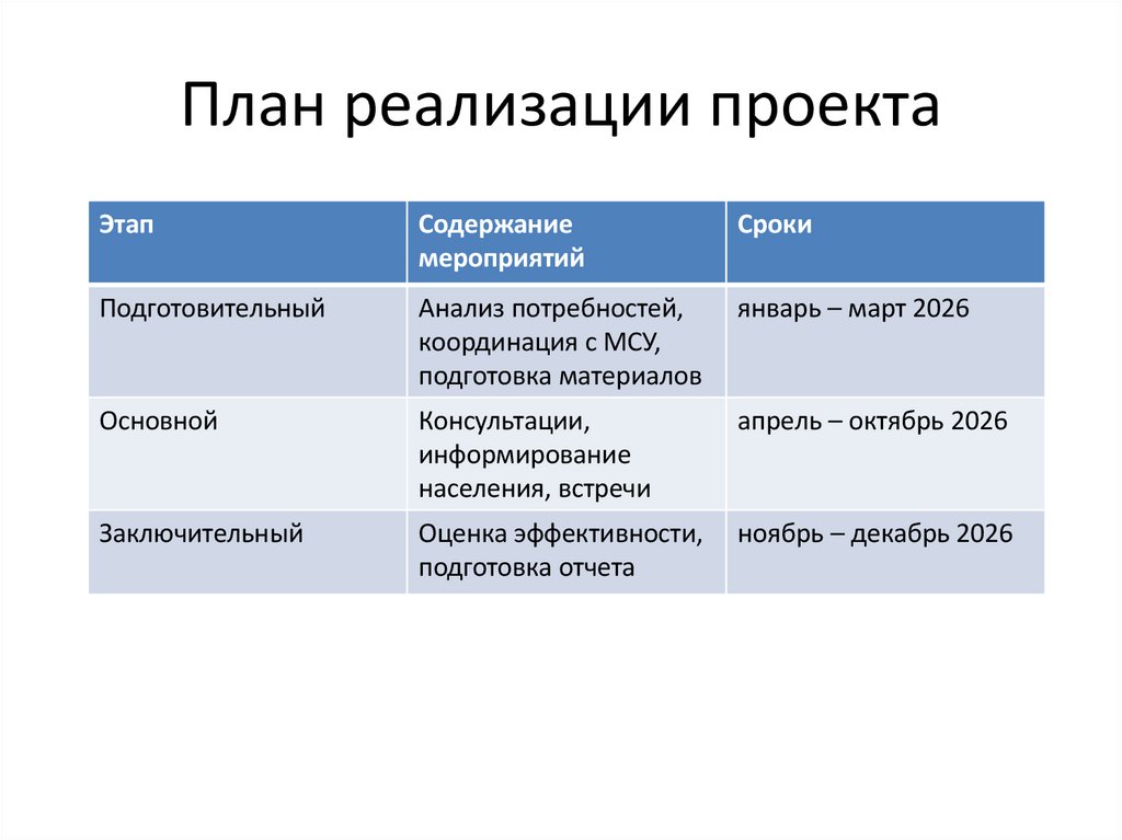 План реализации проектаЭтап